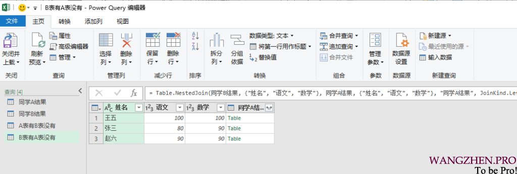 选中同学A结果,点击 合并查询-将查询合并为新查询
