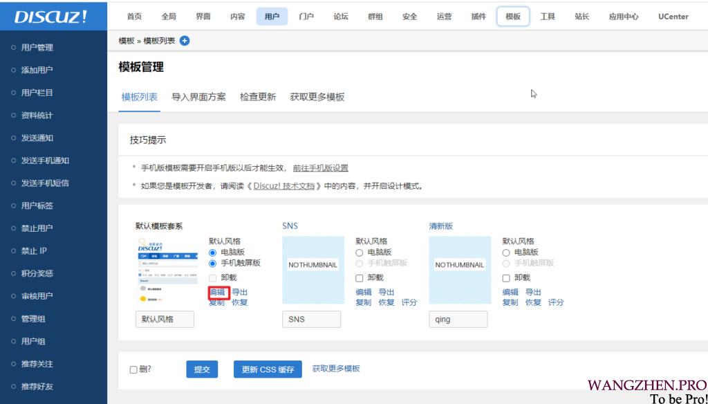 进入模板编辑界面,点击当前模板套系下方那个的编辑按钮