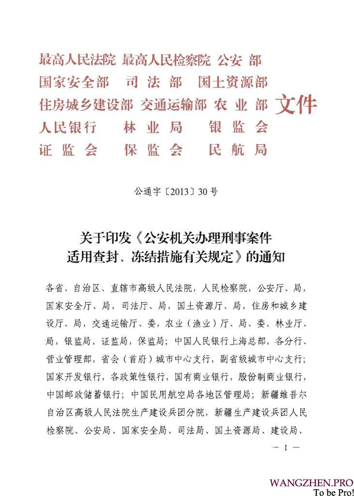 公通字【2013】30号-公安机关办理刑事案件适用查封、冻结措施有关规定