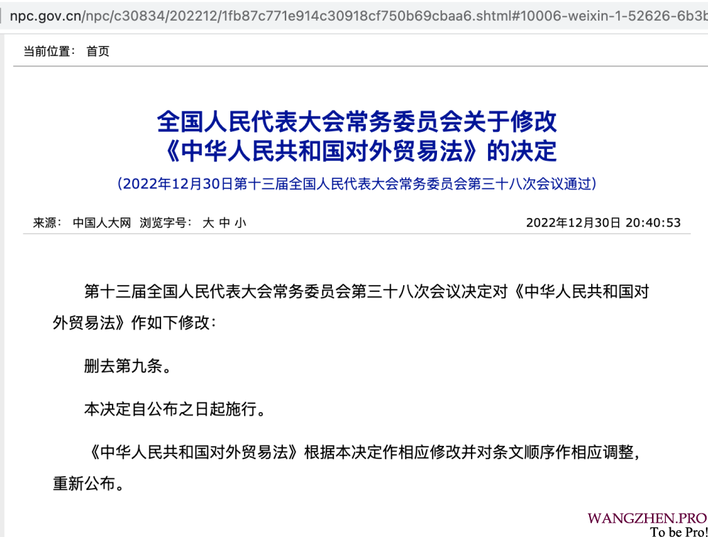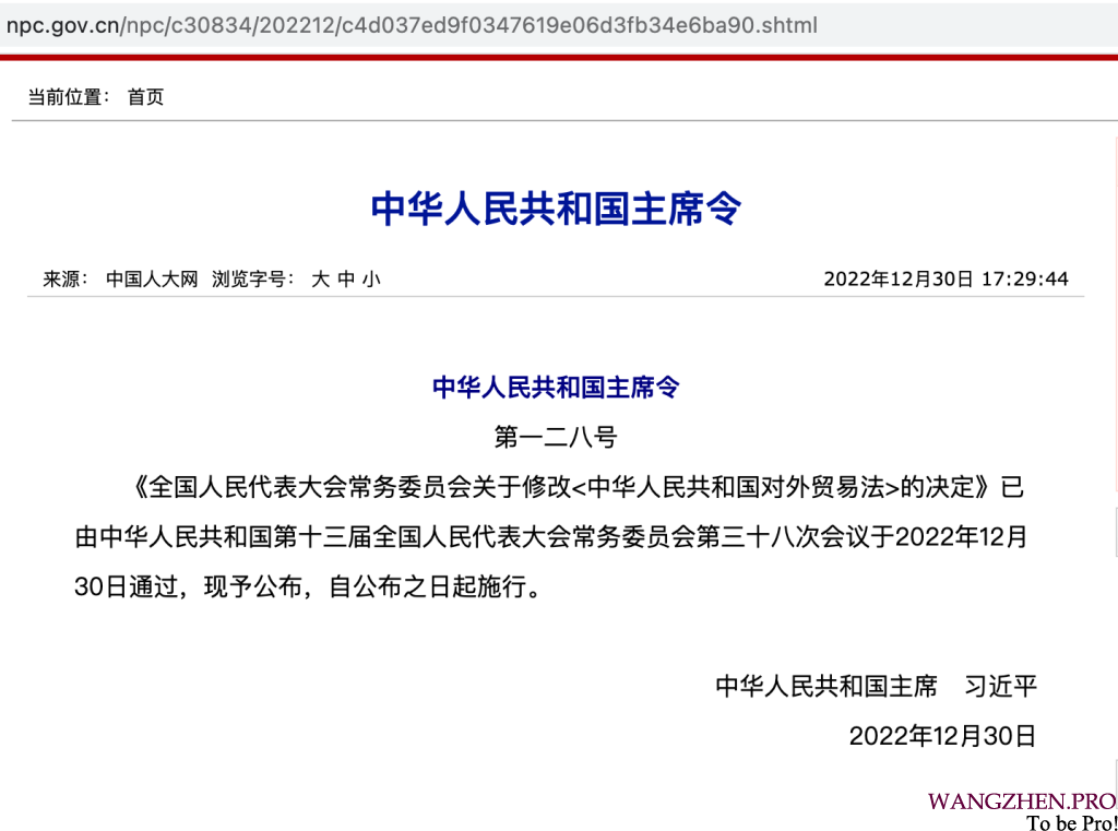 中华人民共和国主席令第一二八号,也明确了对《中华人民共和国对外贸易法》修改的决定。